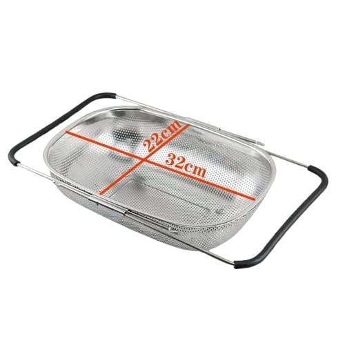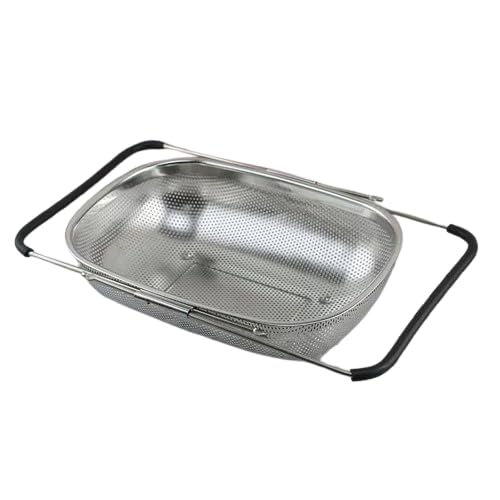 Generic - صفاية توضع فوق الحوض، صفاية بيضاوية ستانلس ستيل سعة 4 كوارت مع يد مطاطية قابلة للتوسيع، صفاية شبكية صغيرة، صفاية مطبخ لتصفية وتصريف وشطف الخضروات والفواكه S