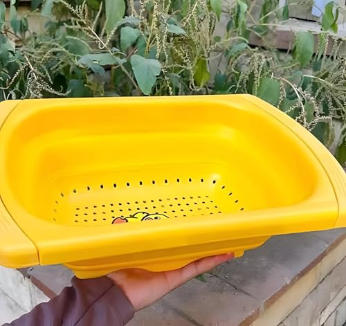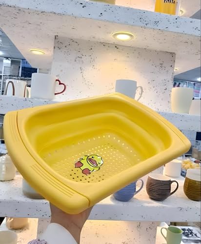 Generic - مصفاة فوق الحوض - مصفاة قابلة للطي بنمط بطة صفراء مع مقابض متينة، مثالية لتصريف المعكرونة والخضروات والفواكه بدون فوضى.