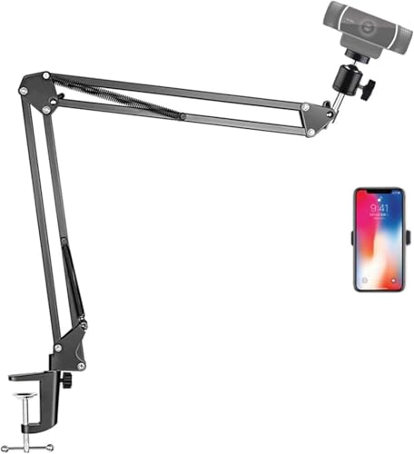 Generic - حامل علوي لكاميرا ويب للمكتب مع حامل للموبايل، حامل ذراع مقص تعليق متوافق مع لوجيتك بريو 4K C922X C930e C930 C920 C615 جوبرو 7/6/5/4