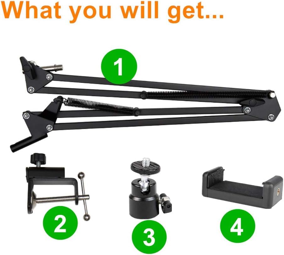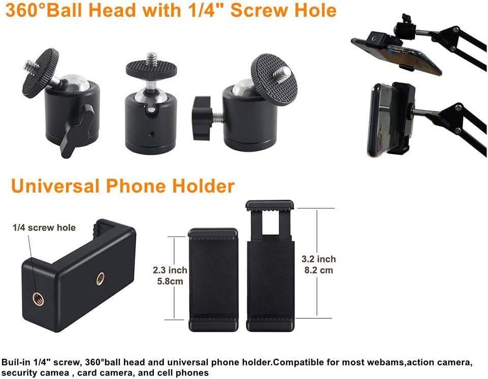 - يمكن لحامل كاميرا الويب العلوي مع ذراع صلب مزدوج الدعم وسوستة تعليق مزدوجة سميكة أن يمنع كاميرات الويب أو الموبايلات من السقوط، مع توفير ثبات عالٍ ومتانة عالية. حيث تسمح لك أذرع مقص التعليق بتعديل الكاميرا بسهولة. ويمكنك ضبط حامل الموبايل العلوي حسب الزاوية والارتفاع المناسبين حسب الحاجة.
