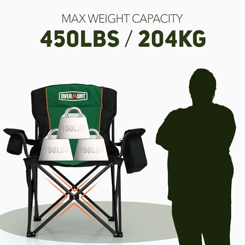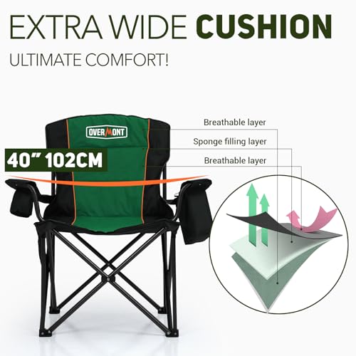 Overmont - كرسي خارجي عصري من أوفرمونت للتخييم والشاطئ والحديقة مع جيوب تخزين وحقيبة تبريد، مصنوع من قماش أكسفورد والإسفنج، باللون الأخضر