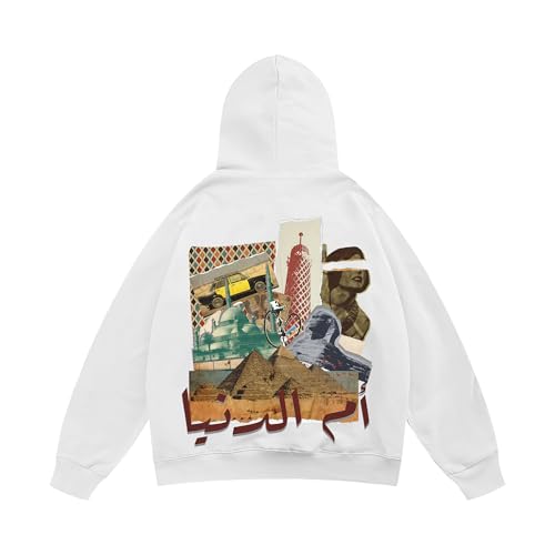 Print n Go - سويت شيرت بغطاء للرأس من القطن بمقاس كبير للجنسين من ام الدنيا
