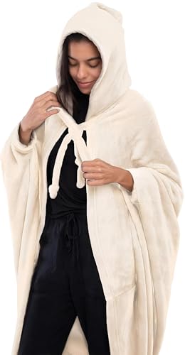 Generic - غطاء راس كبير الحجم - مصنوع من الصوف المخملي للدفء والراحة، بطانية يمكن ارتداؤها للشتاء، ناعمة ومريحة باللون الابيض والبيج والبينك