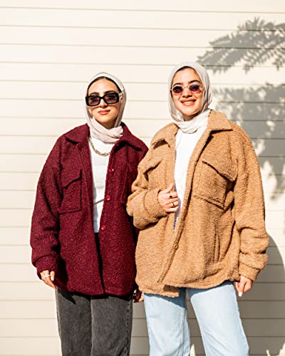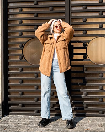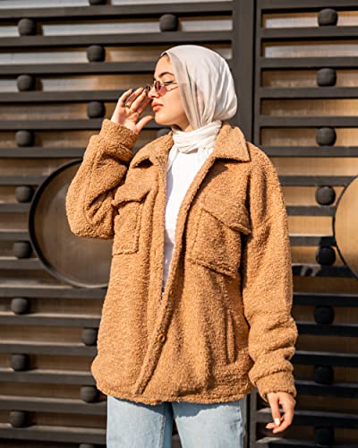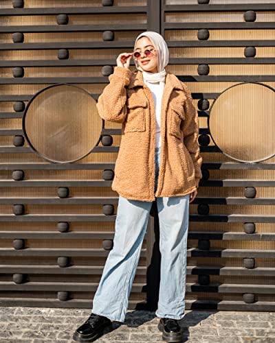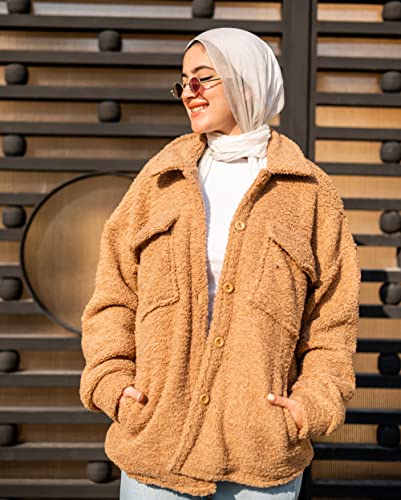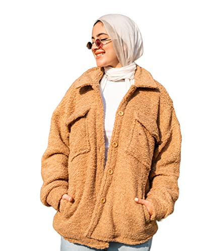 Pinky - جاكيت مصنوع من خامة الصوف الناعم للنساء بمقاس كبير لون كافيه