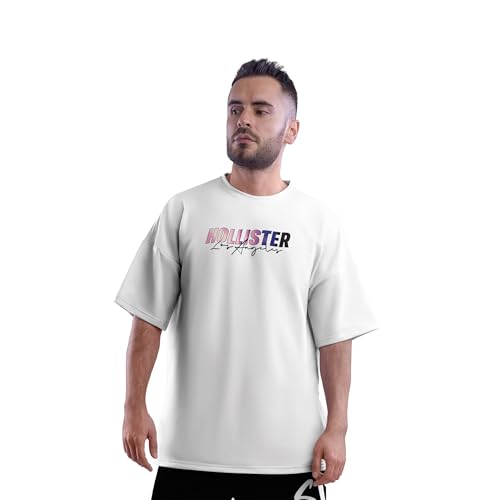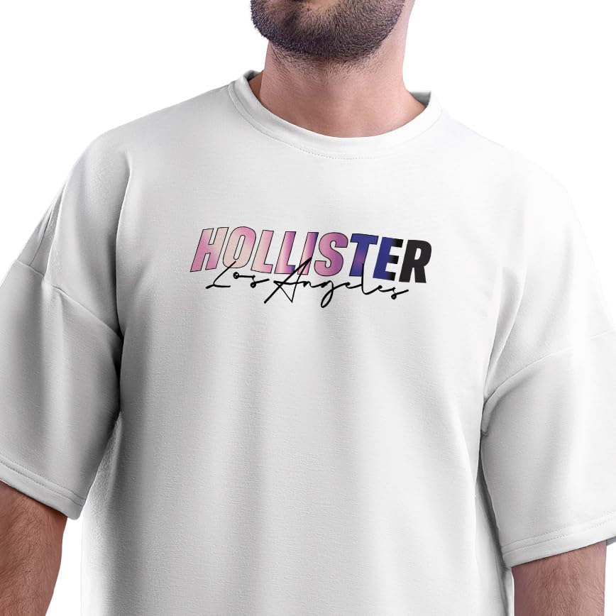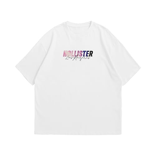 Generic - تي شيرت رجالي كبير الحجم مطبوع عليه Hollister Los Angeles | اسود وابيض (ابيض، XXL)