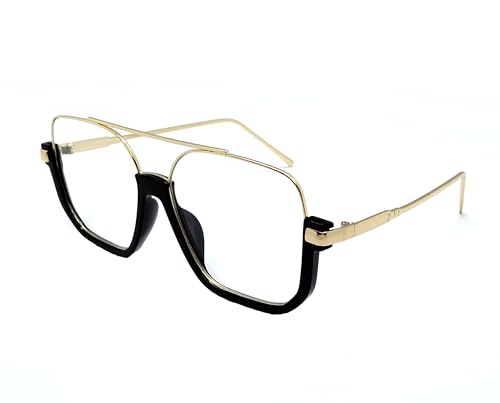 Generic - نظارة شمسية مربعة كبيرة الحجم للجنسين (فضي-اسود) (ذهبي، اسود)