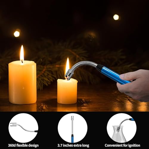 OVIARA - ولاعة USB قابلة لإعادة الشحن 360 درجة بمؤشر ليد طويل بدون لهب للشموع والعلاج العطري والتخييم والشواء من اوفيارا، قطعة واحدة، قد تختلف الألوان