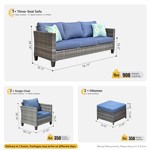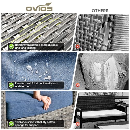 ovios - طقم اثاث للحديقة من اوفيوس الخوص للاستخدام الخارجي بمخدات باغطية مقاومة لعوامل الطقس ومخدتين صغيرتين وكنبة وللفناء الخلفي والحديقة ازرق دينيم