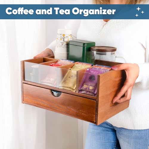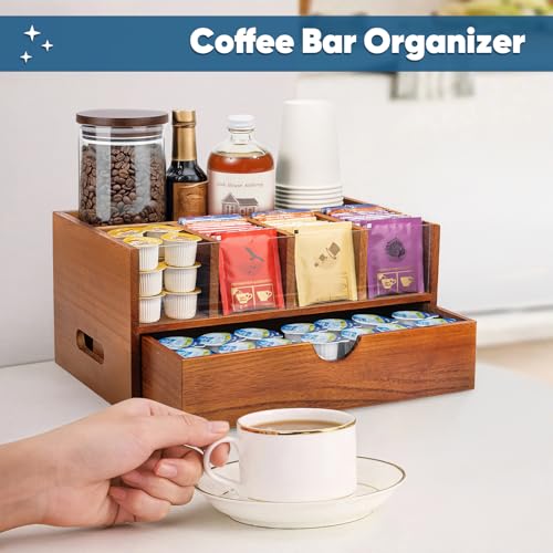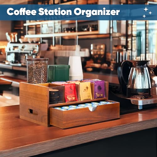 OWATRKDEY - منظم طاولة القهوة من اوواتركدي، منظم درج القهوة والشاي، منظم اكواب القهوة وحامل كبسولات مع درجين