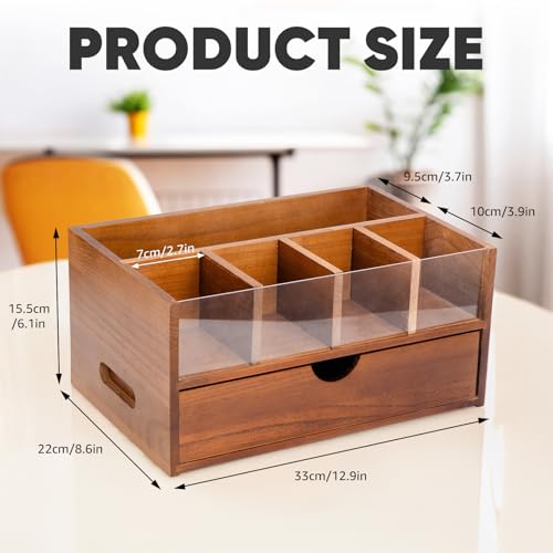 - خشب قوي: يبلغ مقاس منظم بار القهوة الخاص بنا 12.9 × 8.6 × 6.1 انش. منظم طاولة القهوة مصنوع من خشب عالي الجودة لمظهر راقي وأنيق. يتميز منظم القهوة والشاي بملمس خشبي شفاف وجميل. السطح أملس وسهل التنظيف والصيانة.