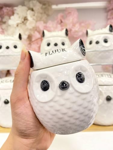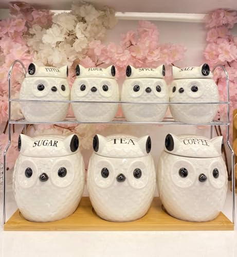 - مجموعة كاملة: طقم حاويات تخزين على شكل بومة يتضمن 7 أوعية للمطبخ لتخزين الملح والفلفل والدقيق والتوابل والسكر والشاي والقهوة