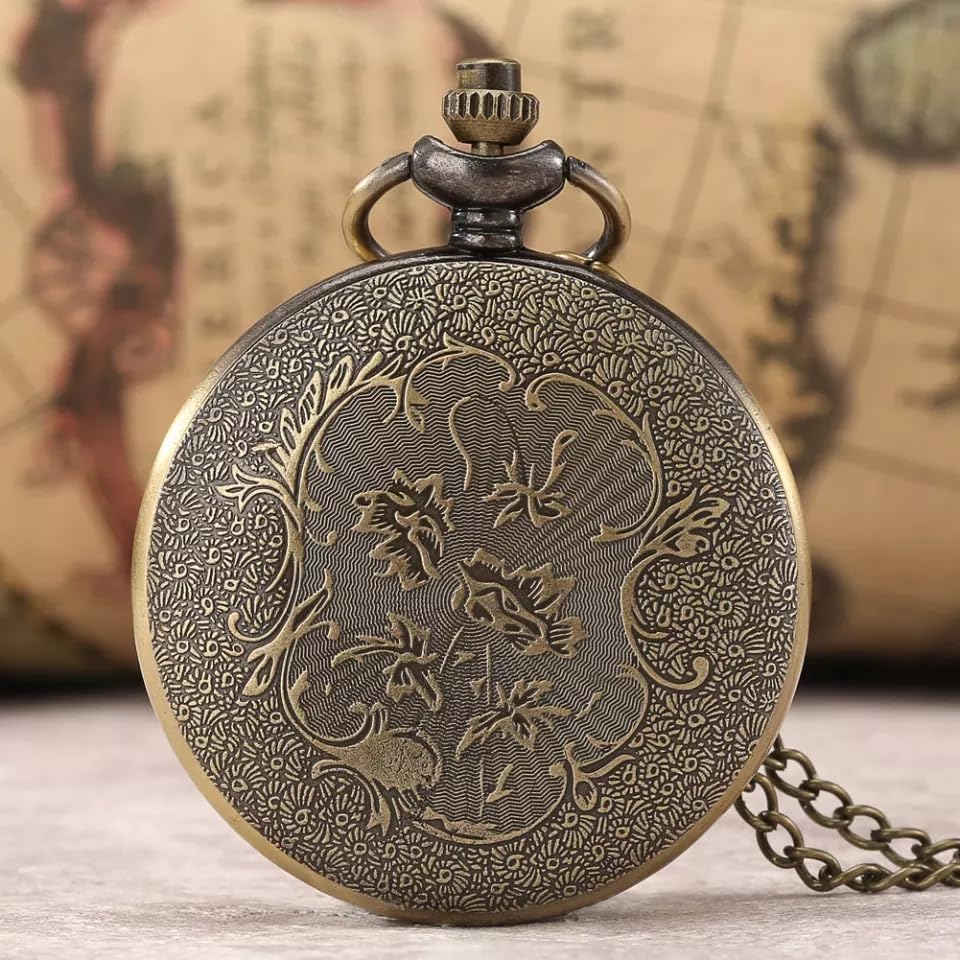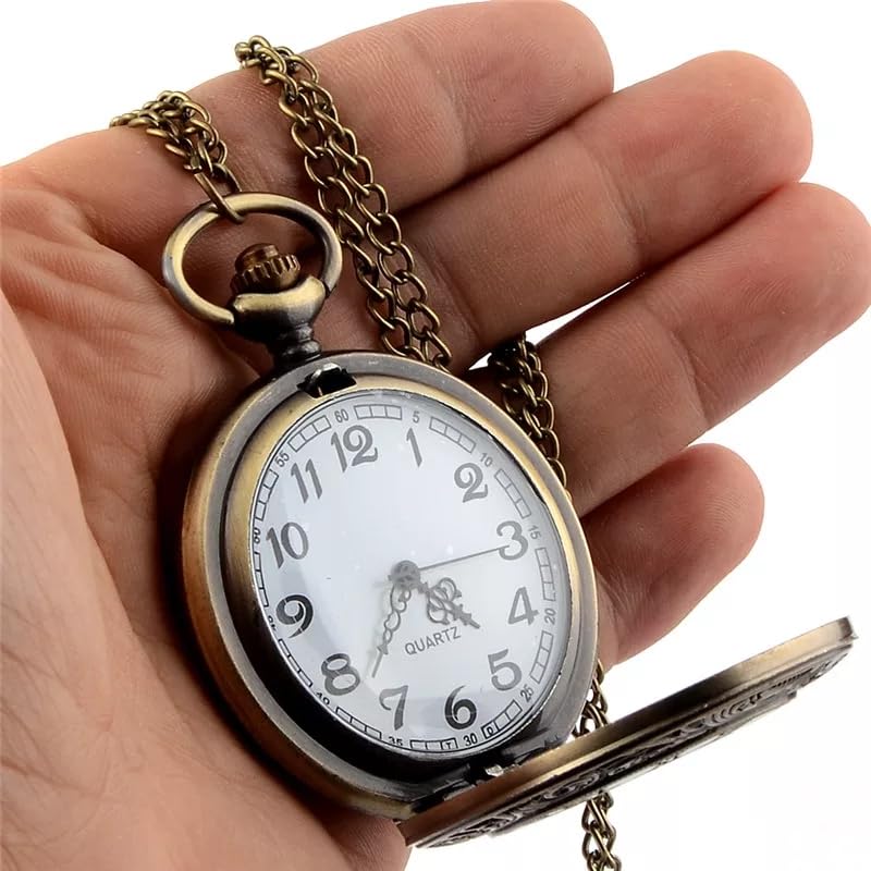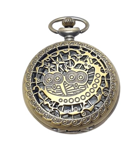 Generic - ساعة جيب كوارتز للجنسين بتصميم بومة مع سلسلة بغطاء مجوف وقلادة برونزية