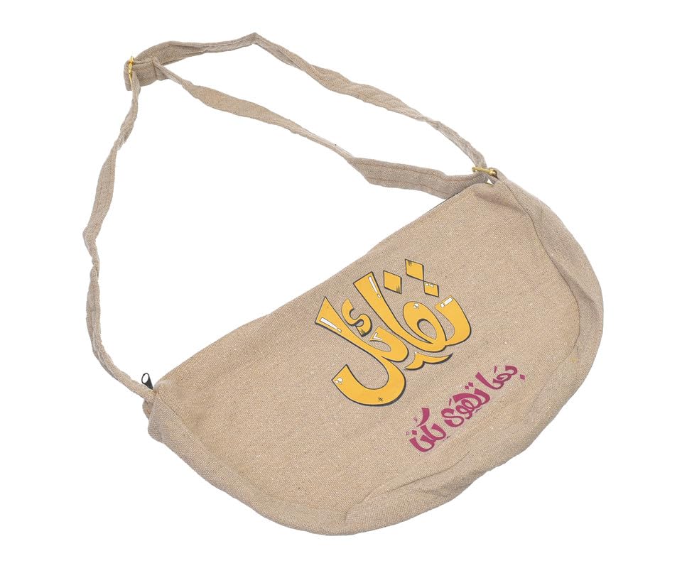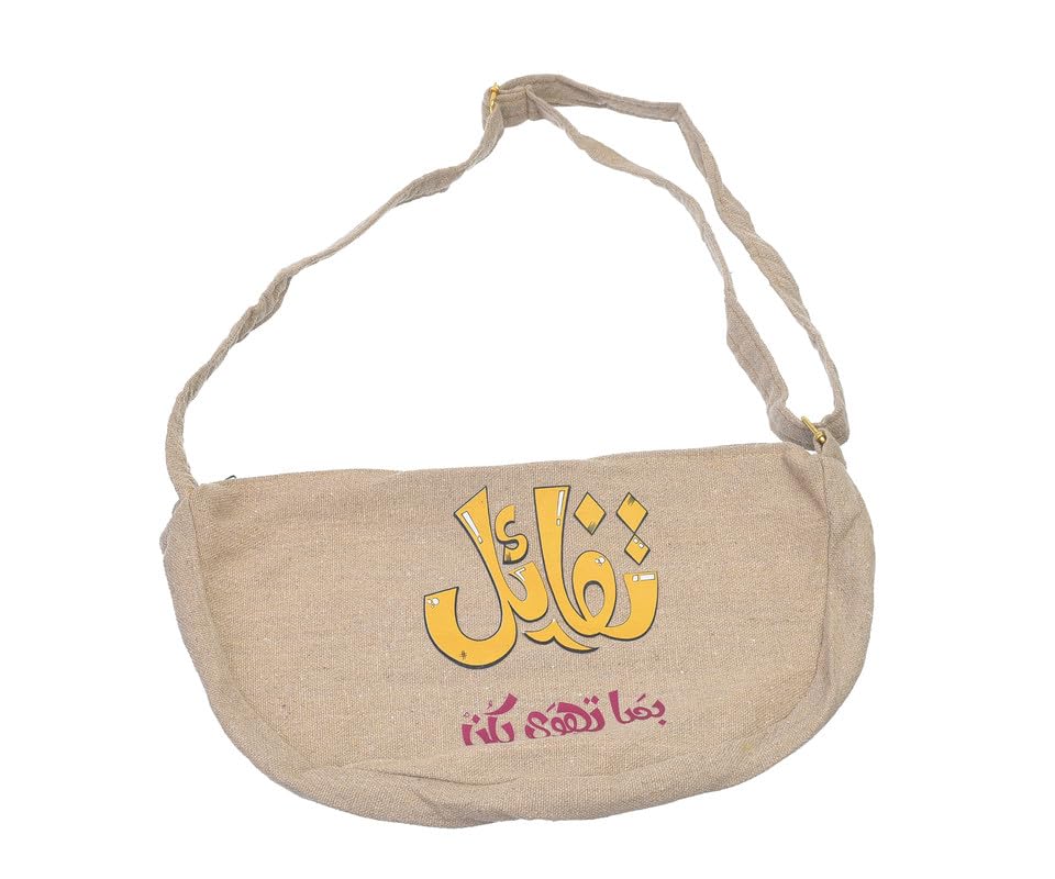 OX - شنطة خصر حريمي من او اكس من القماش بتصميم عصري مطبوع عليها عبارات مرحة مع سوستة، لون بيج - W-100