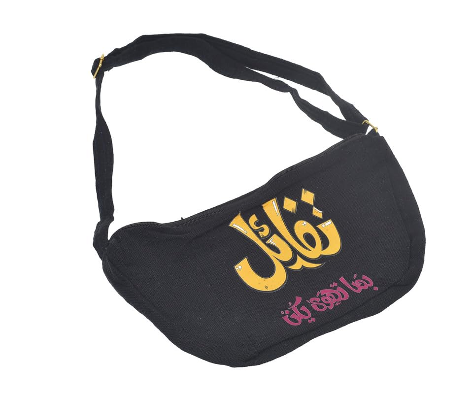 OX - شنطة خصر قماش بسوستة إغلاق بتصميم عصري مطبوع عليها عبارات كوميدية للنساء من اكس او، لون أسود، موديل W-100