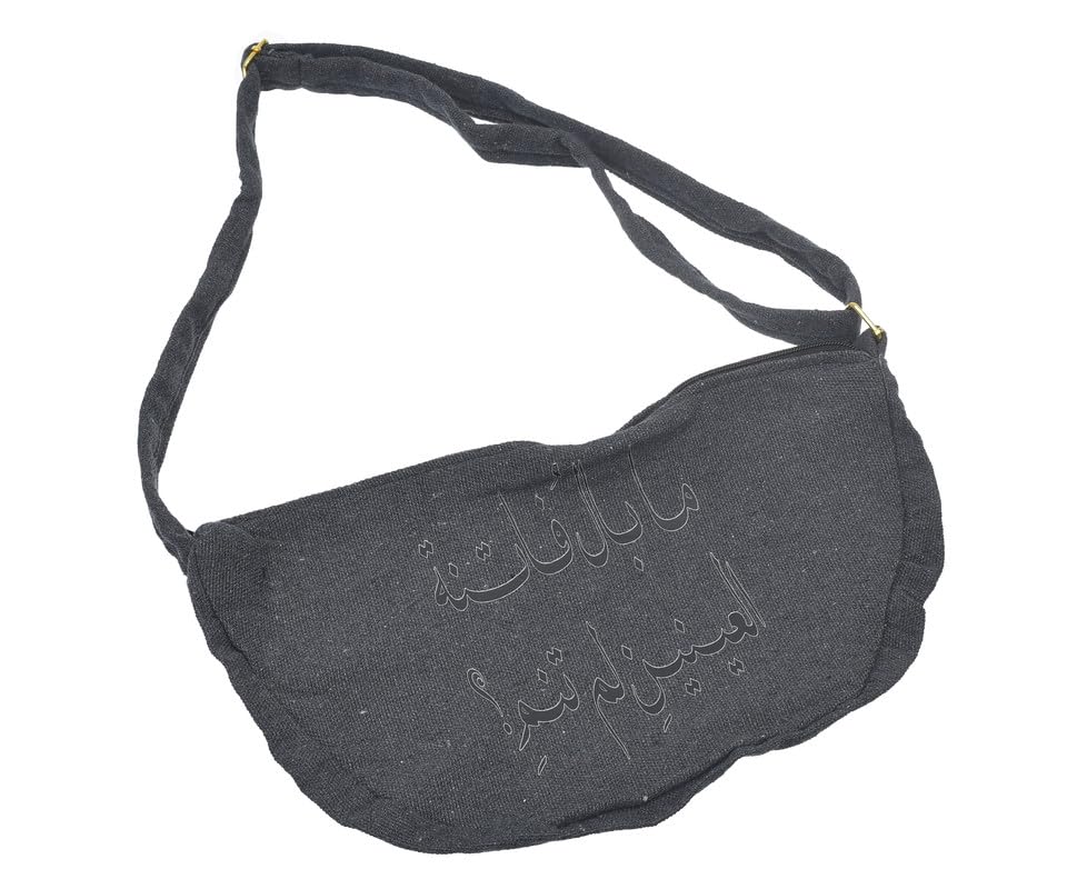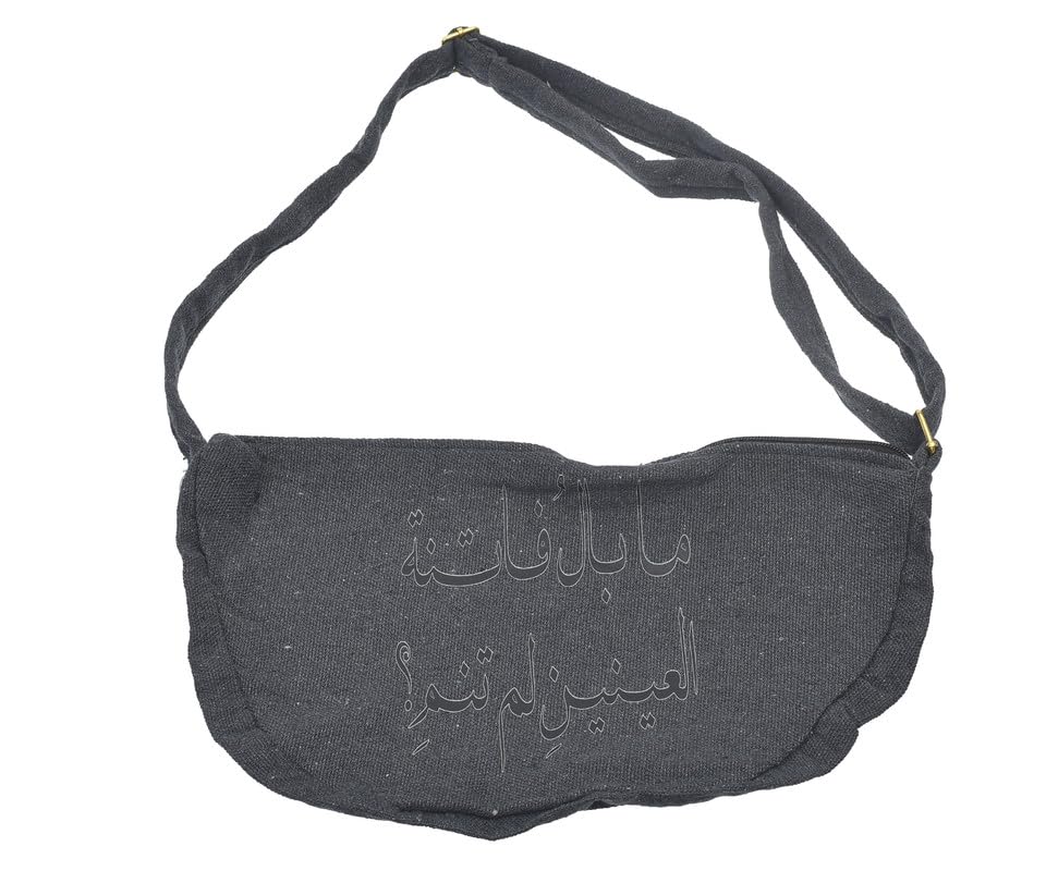 OX - شنطة خصر حريمي من او اكس من القماش بتصميم عصري مطبوع عليها عبارات هزلية مع سوستة، لون رمادي - W-17
