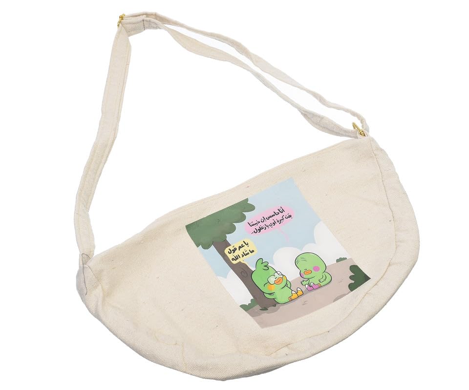 OX - شنطة خصر مطبوعة بعبارات كوميدية للنساء من او اكس، مع سوستة، لون بيج، موديل W-19