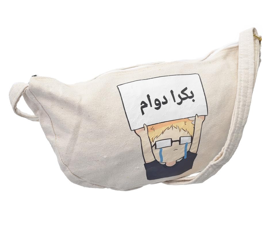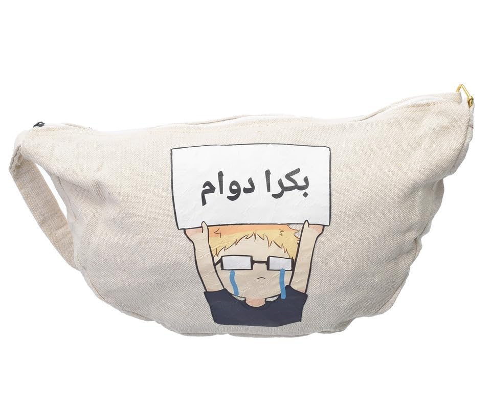 OX - شنطة خصر بسوستة من القماش بتصميم عصري مطبوع عليها عبارات هزلية للنساء من اكس او، لون بيج، موديل W-20