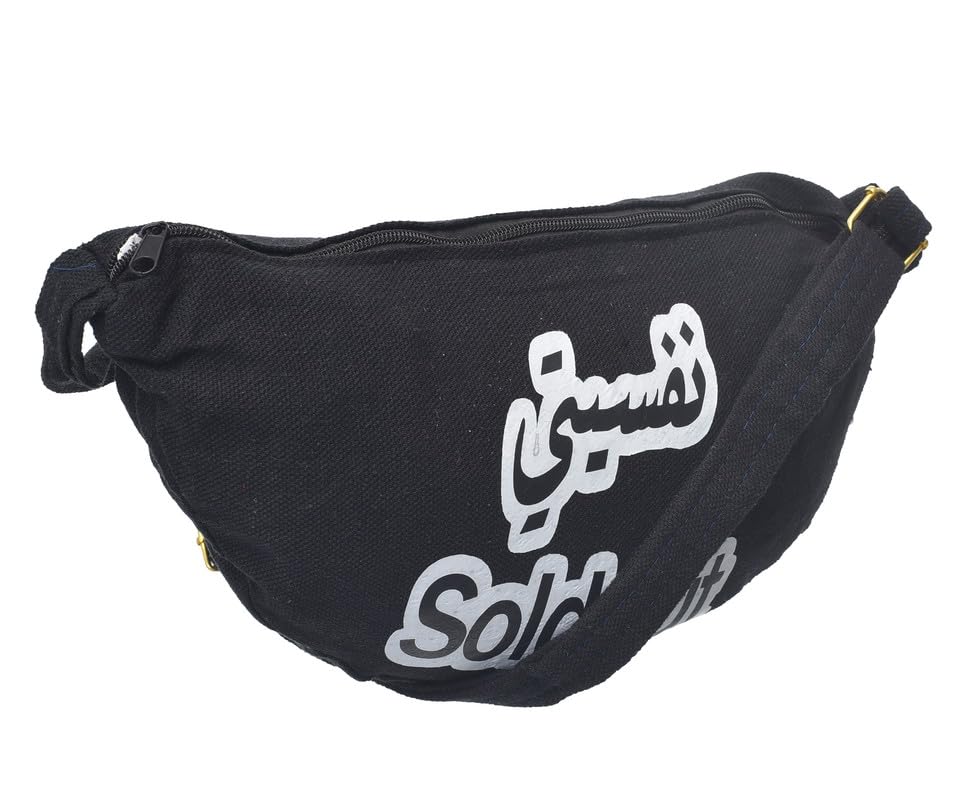 OX - شنطة خصر حريمي من او اكس من القماش بتصميم عصري مطبوع عليها عبارات هزلية مع سوستة، لون رمادي - W-21