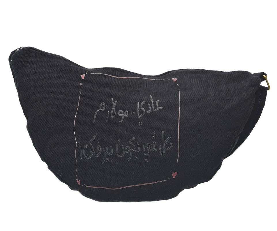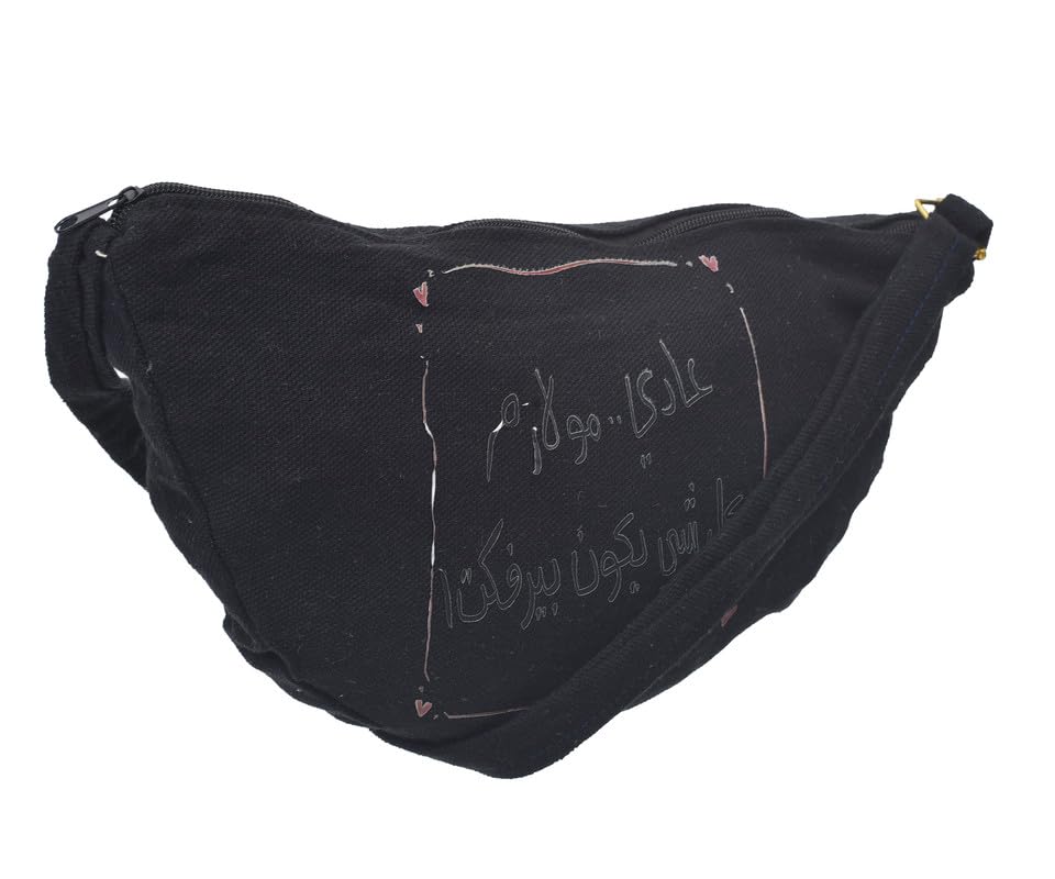 OX - OX شنطة خصر من القماش بتصميم عصري مطبوع عليها عبارات هزلية مع سوستة للنساء، لون اسود موديل W-25