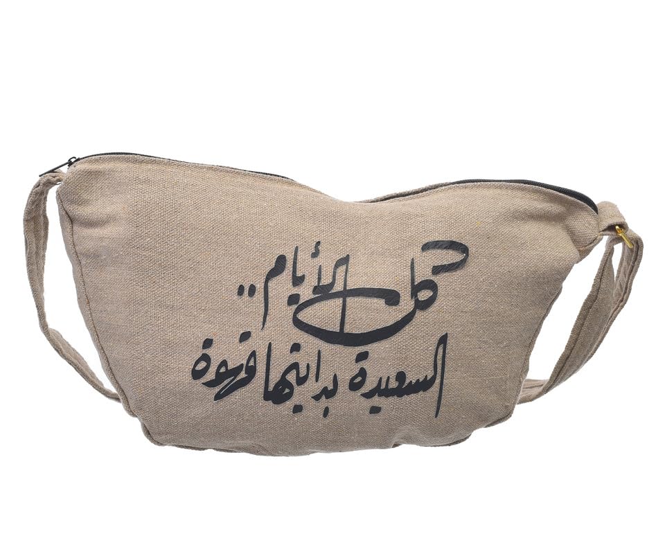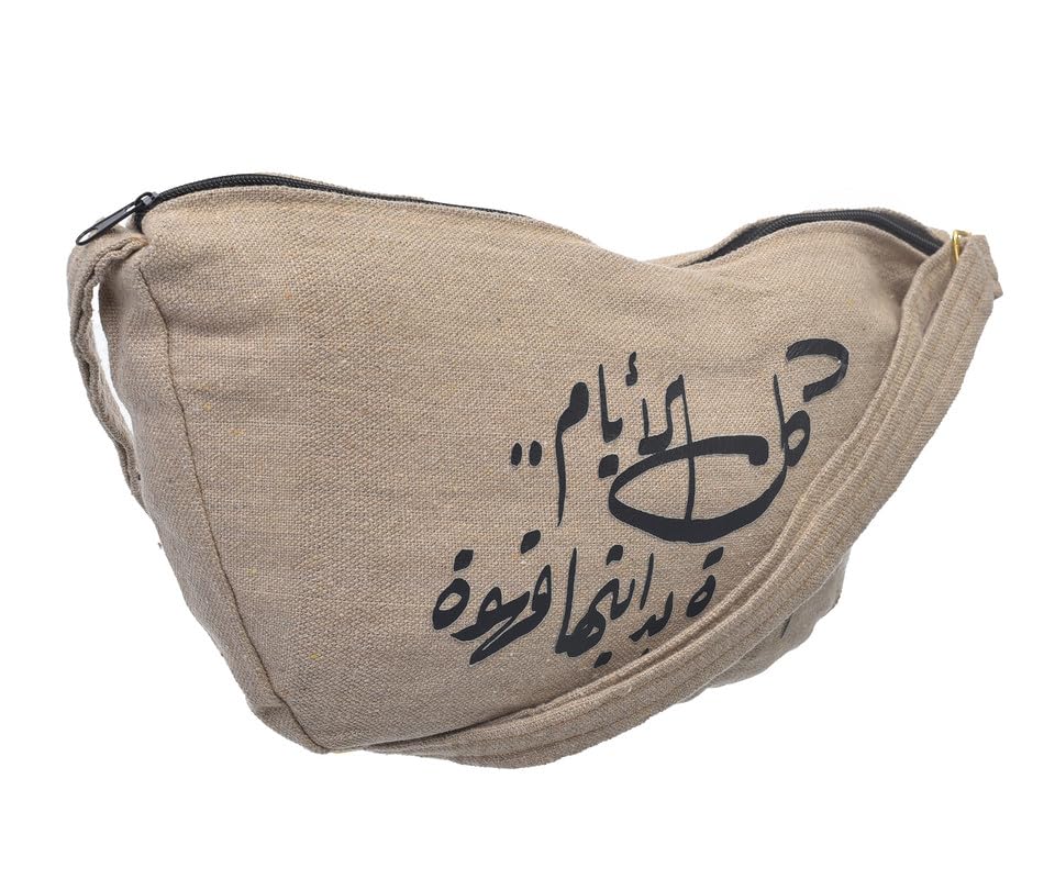 OX - شنطة خصر حريمي بسوستة من القماش بتصميم عصري مطبوع عليها عبارات مرحة من اكس او، لون بيج، موديل W-34