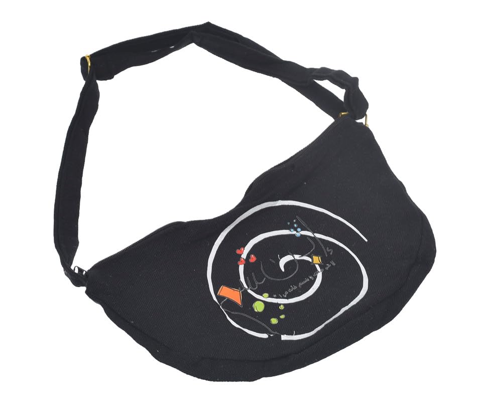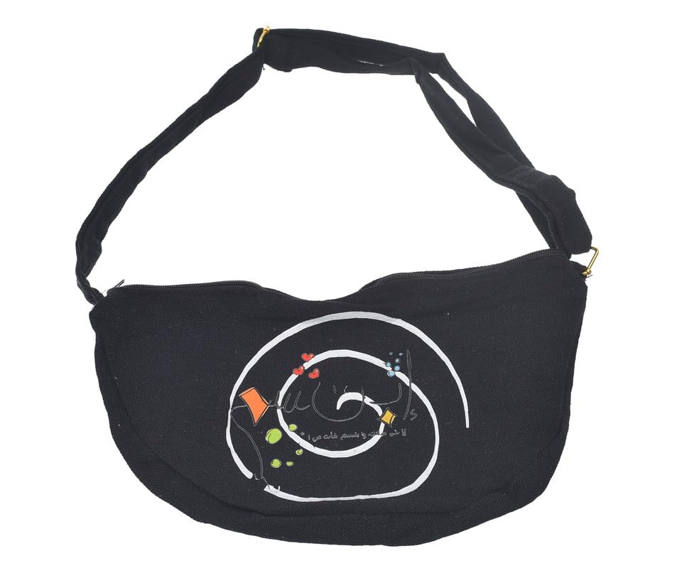 OX - شنطة خصر من القماش من او اكس بتصميم عصري مطبوع عليها عبارات هزلية مع سوستة للنساء، لون اسود موديل W-35