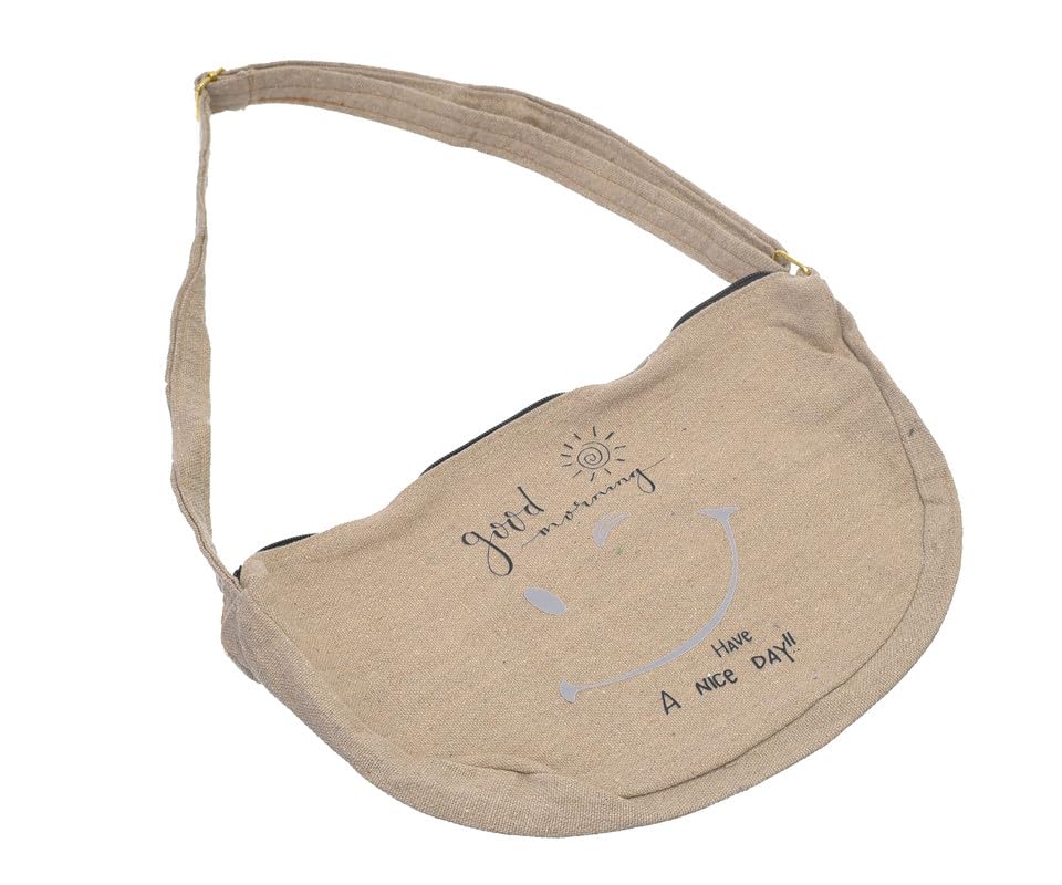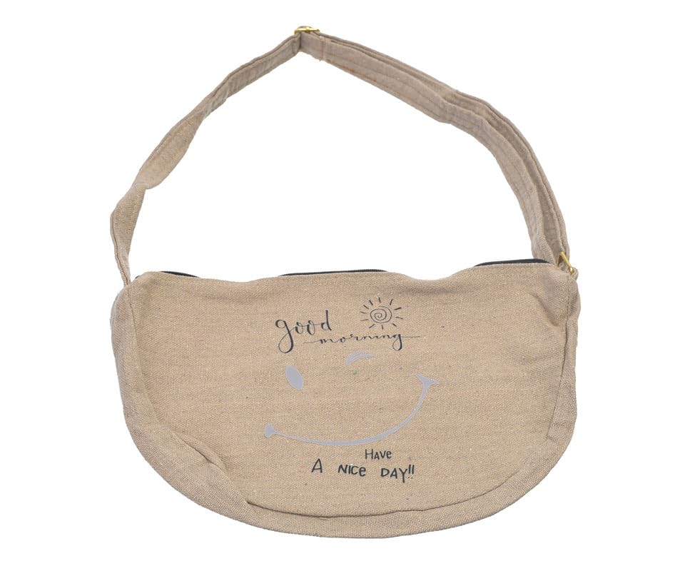 OX - شنطة خصر للنساء من او اكس، من القماش بتصميم عصري مطبوع عليها عبارات هزلية مع سوستة - لون بيج - W-57