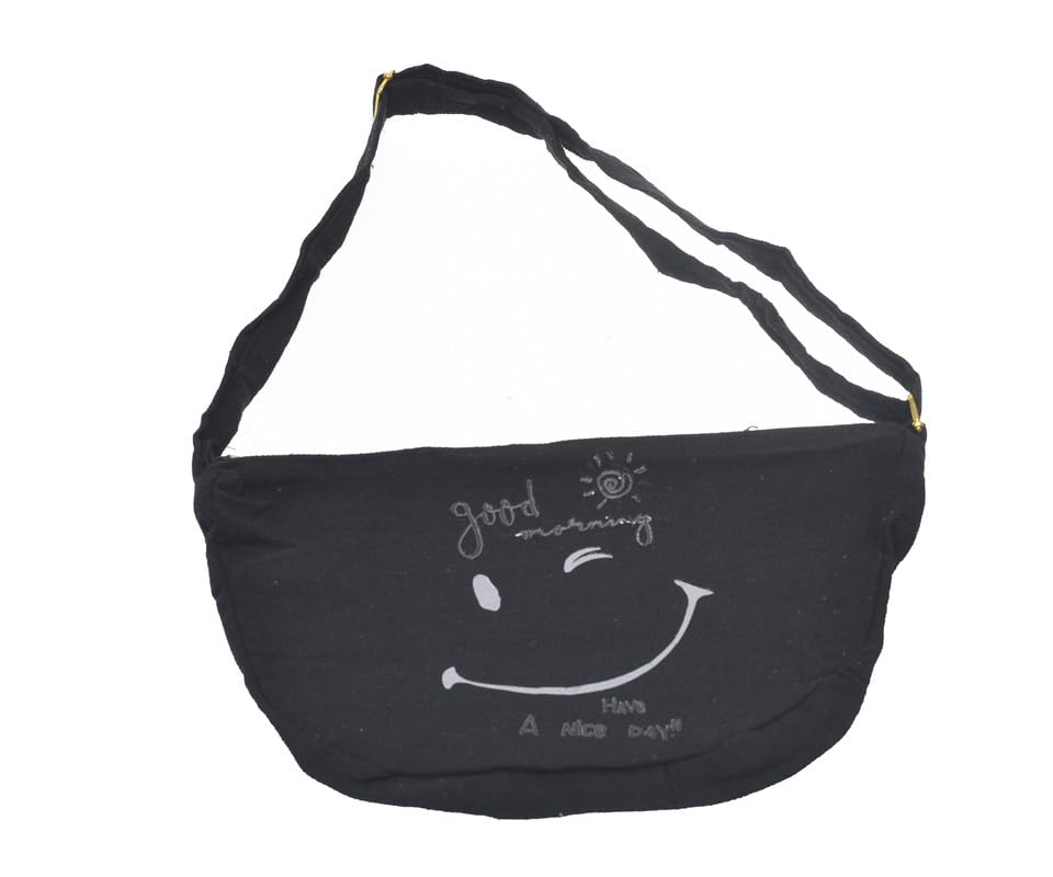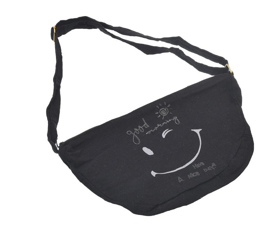 OX - شنطة خصر مطبوعة بسوستة من القماش بتصميم عبارات كوميدية للنساء من او اكس، لون أسود، موديل OX W-57