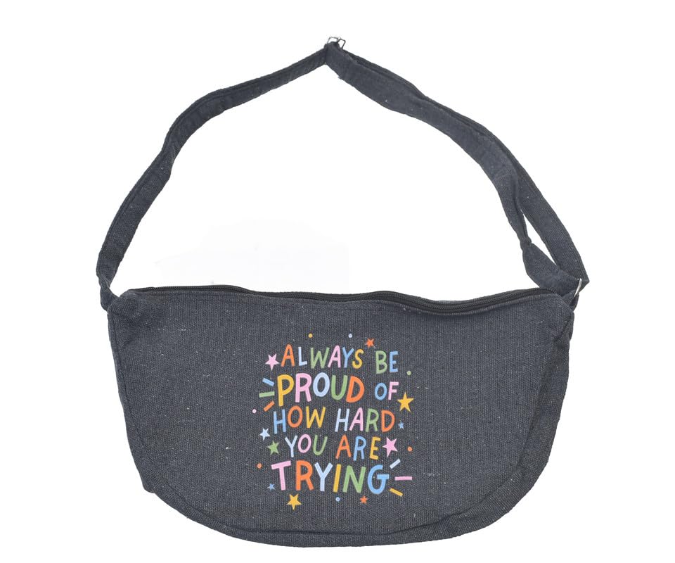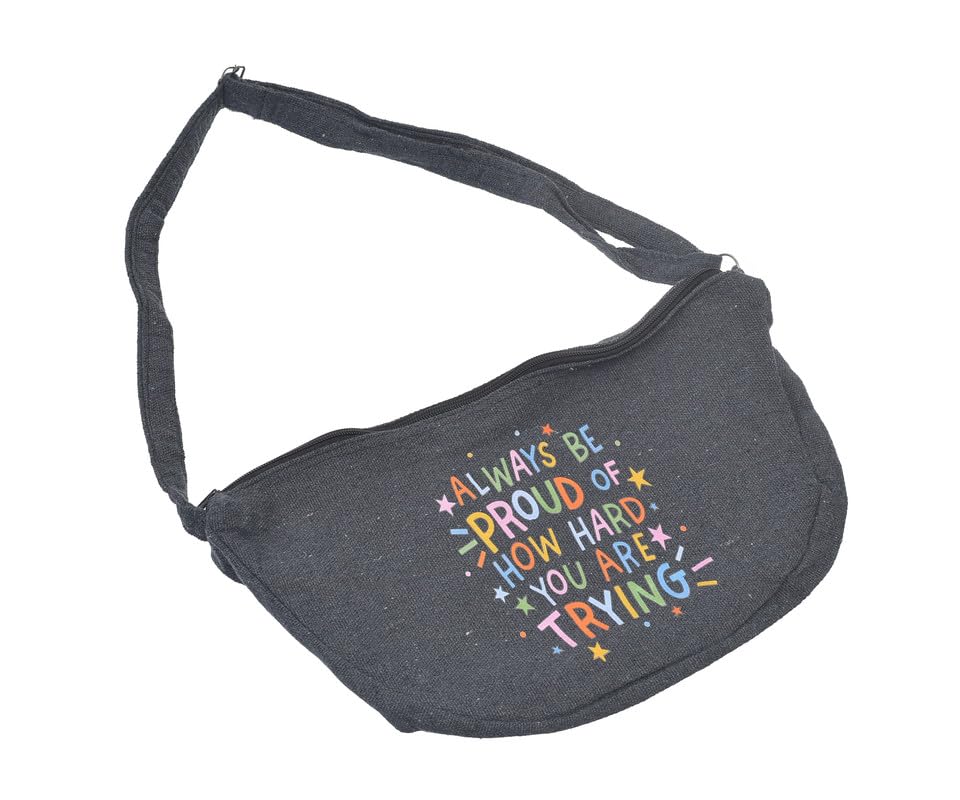 OX - شنطة خصر قماش بتصميم عصري بطباعة عبارات هزلية مع سوستة للنساء من او اكس، لون رمادي، W-71