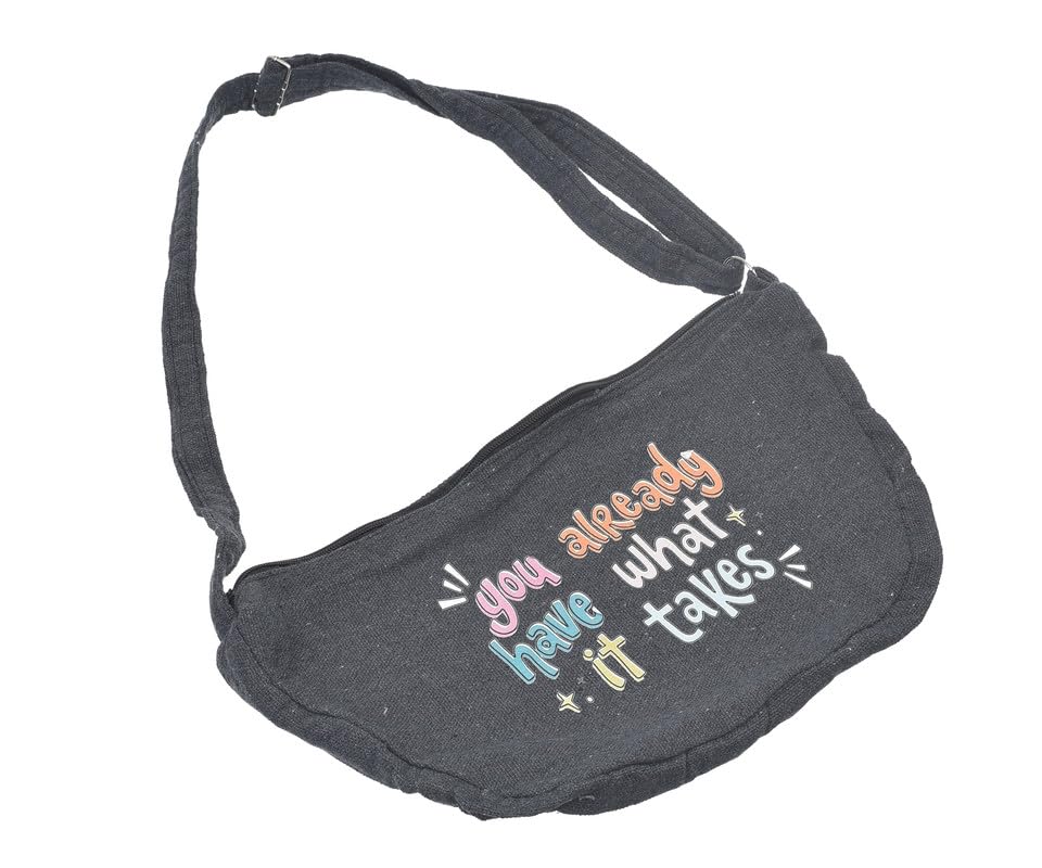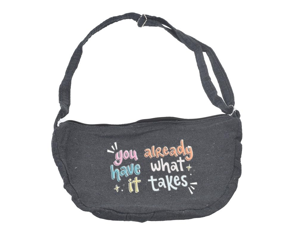 OX - شنطة خصر من القماش بتصميم عصري مطبوع عليها عبارات هزلية مع سوستة للنساء من او اكس، لون رمادي - W-72