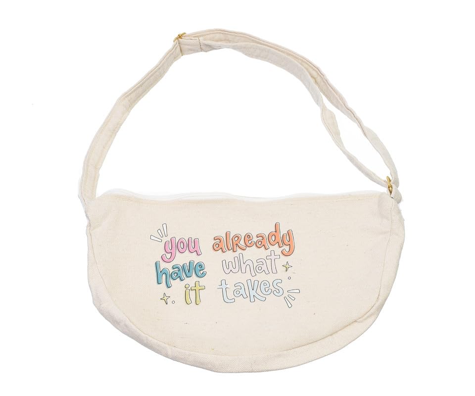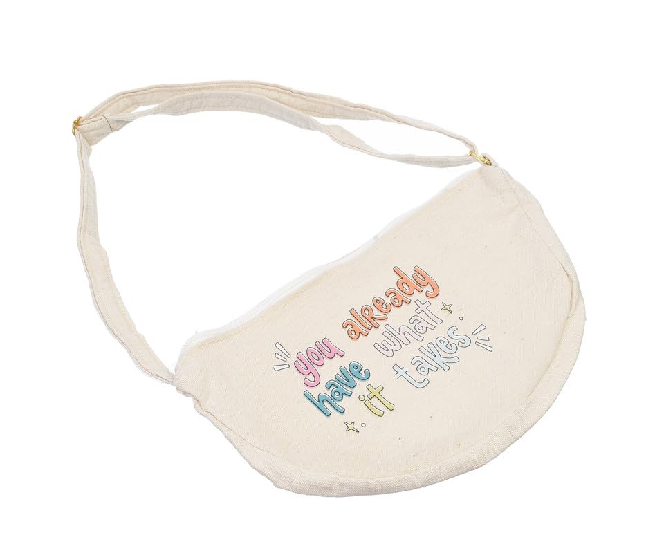 OX - شنطة خصر حريمي قماش عصرية مطبوعة عليها عبارات مرحة بسوستة من او اكس، اوف وايت، W-72