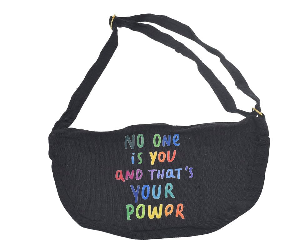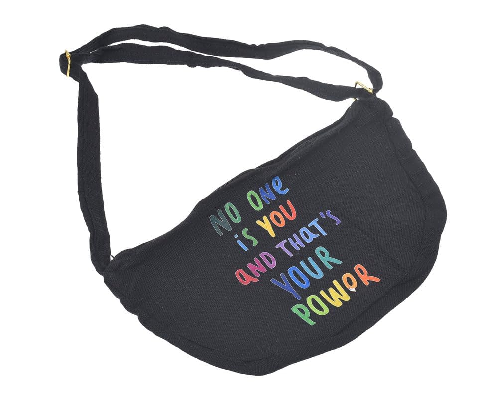 OX - شنطة خصر مطبوعة بسوستة من القماش بتصميم عبارات كوميدية للنساء من او اكس، لون أسود، موديل OX W-78