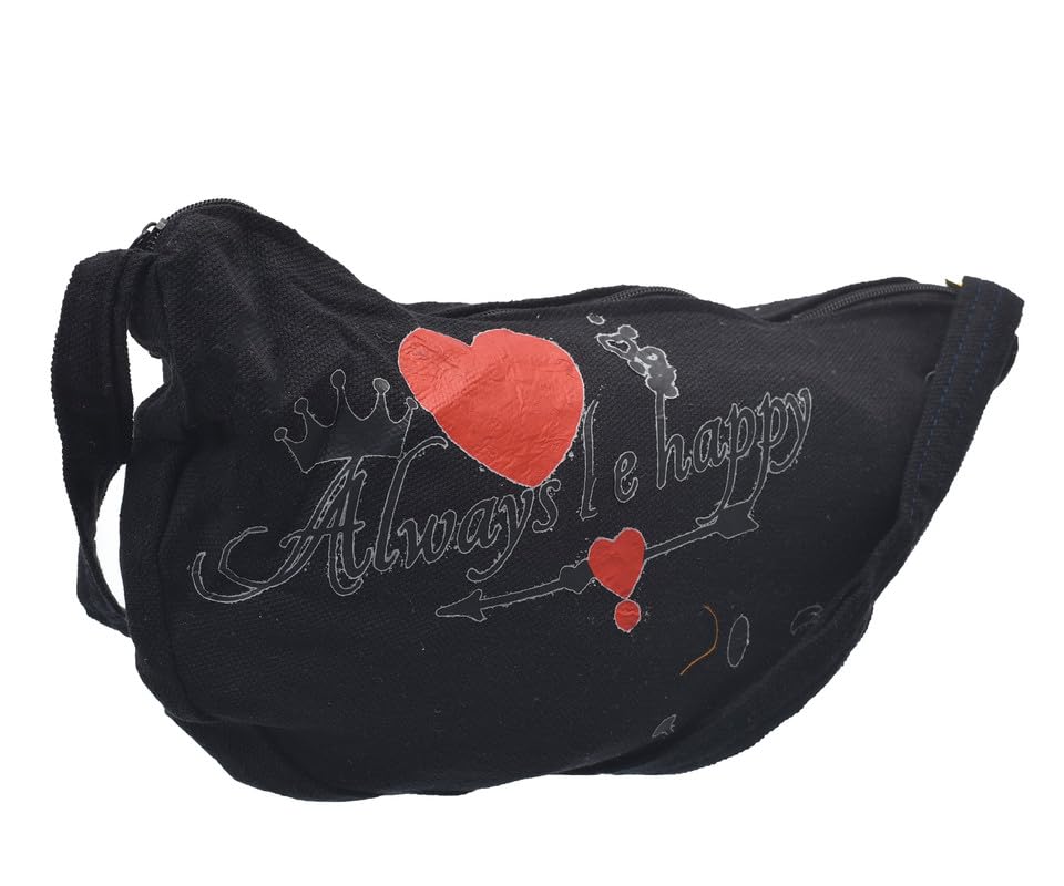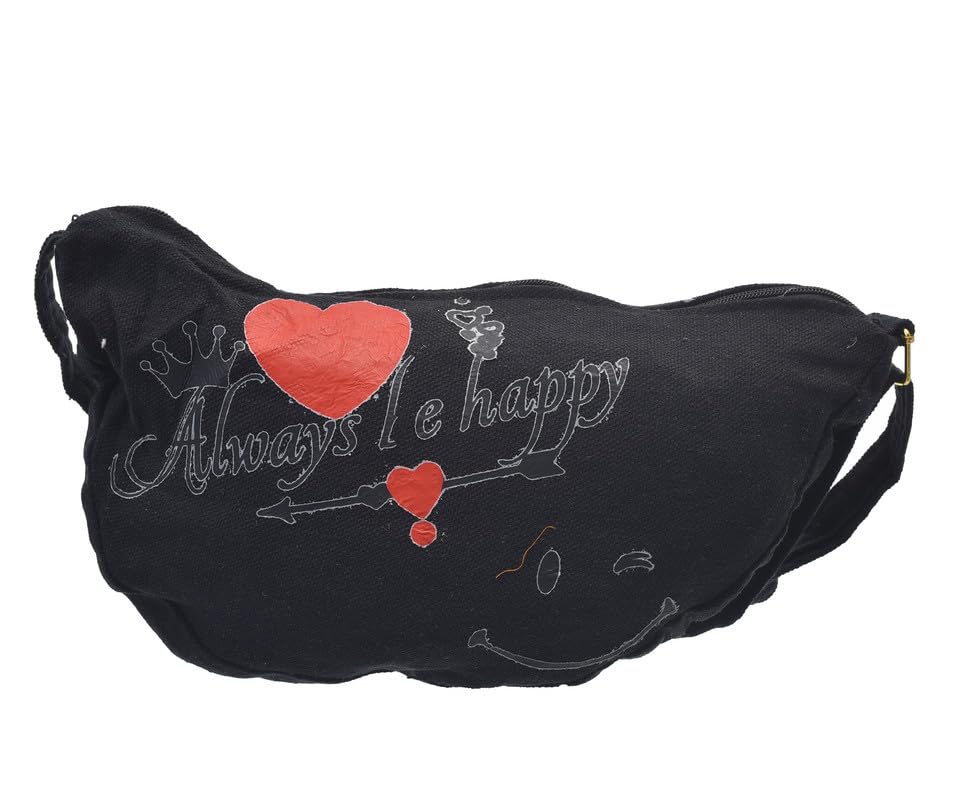 OX - شنطة خصر من القماش بتصميم عصري مطبوع عليها عبارات هزلية مع سوستة للنساء من او اكس، لون أسود، W-8