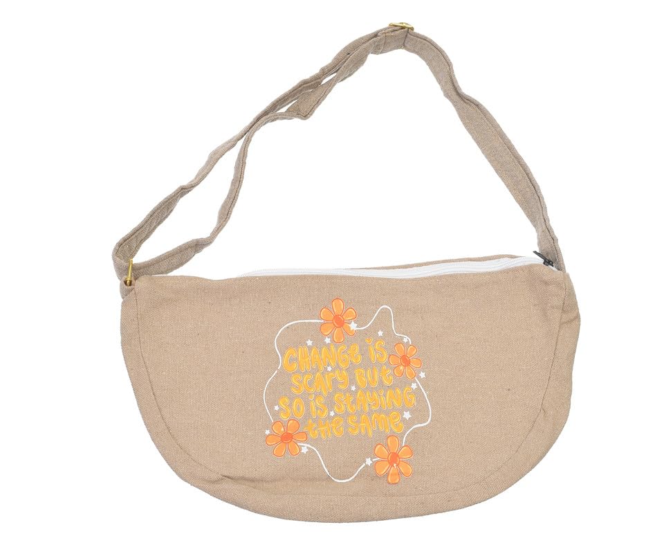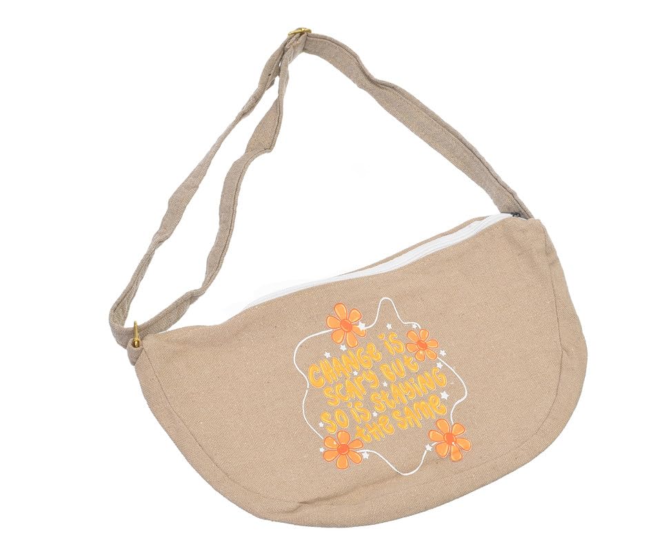 OX - شنطة خصر من القماش بتصميم عصري مطبوع عليها عبارات هزلية مع سوستة للنساء من او اكس، لون بيج - W-82