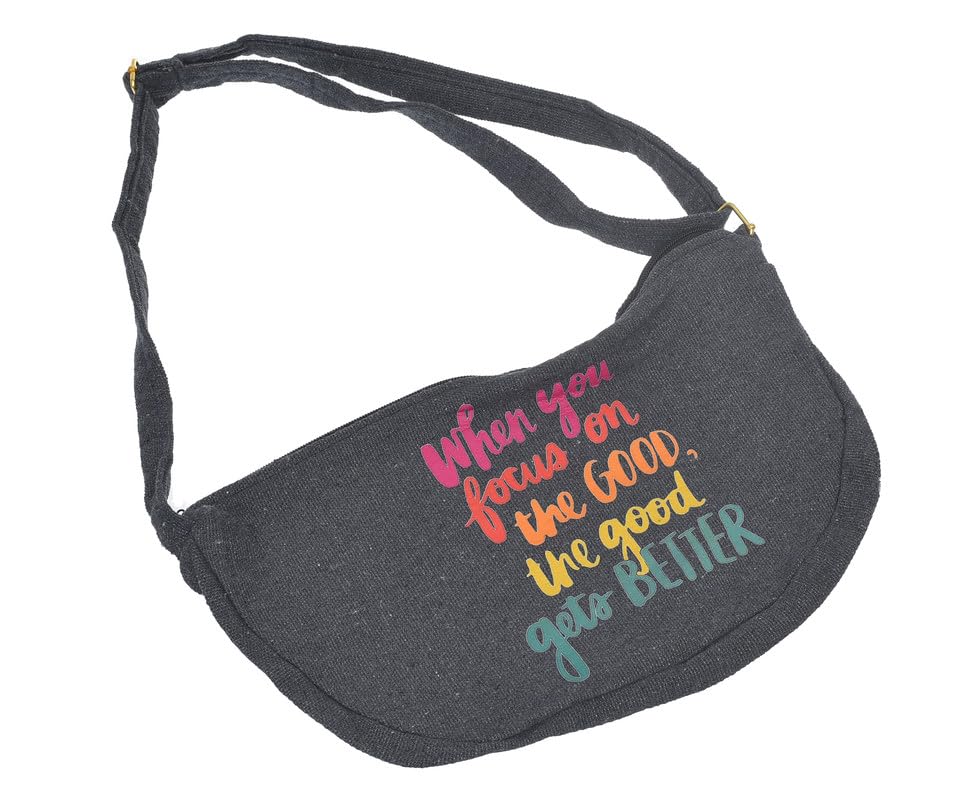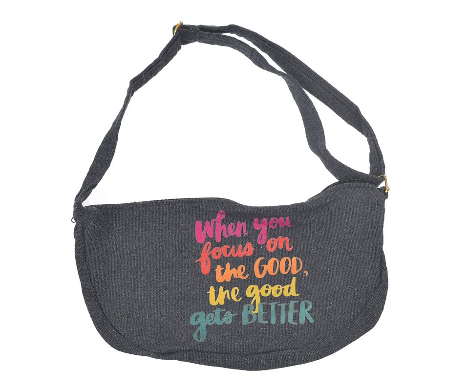 OX - شنطة حريمي من او اكس خصر من القماش بتصميم عصري مطبوع عليها عبارات هزلية مع سوستة، لون رمادي - W-90