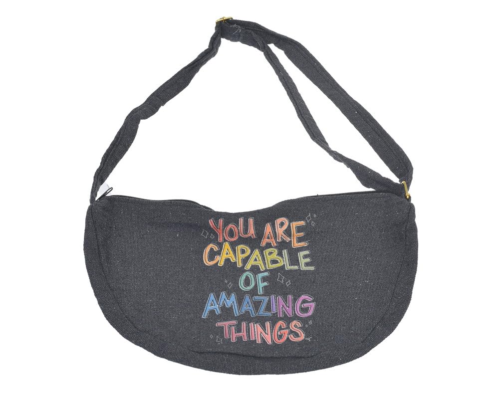 OX - شنطة خصر بسوستة للنساء من او اكس بتصميم قماشي عصري مطبوع عليها عبارات مرحة، لون رمادي W-91