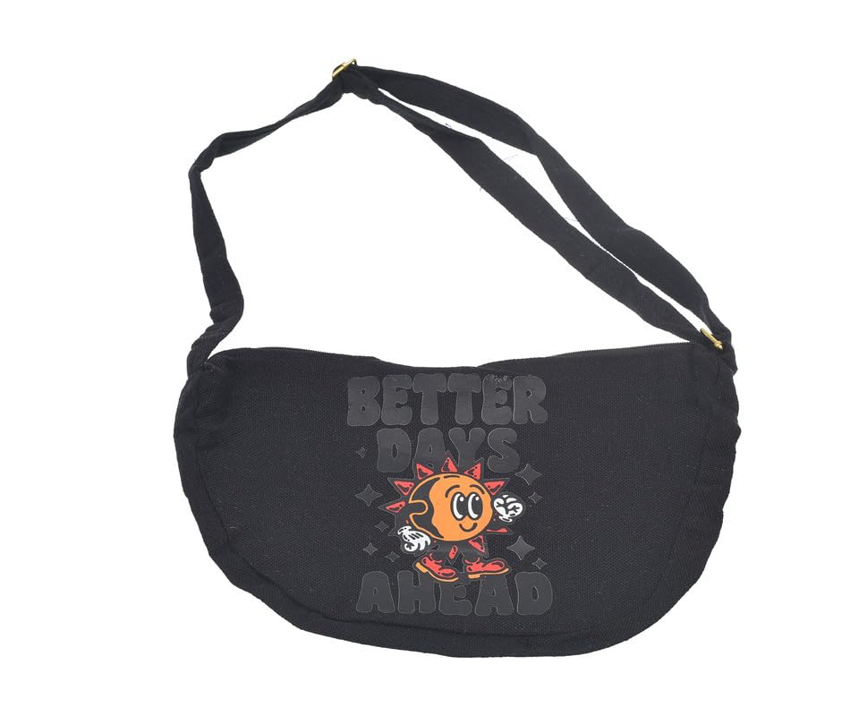 OX - شنطة خصر من القماش بتصميم عصري مطبوع عليها عبارات كوميدية مع سوستة للنساء من او اكس - لون أسود - W-97