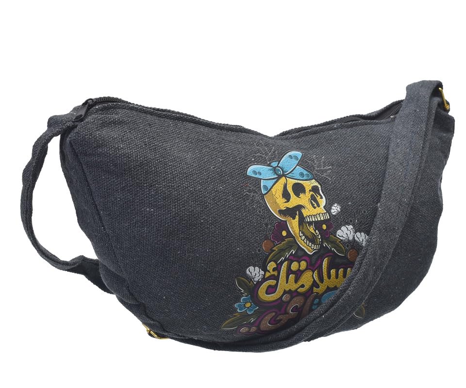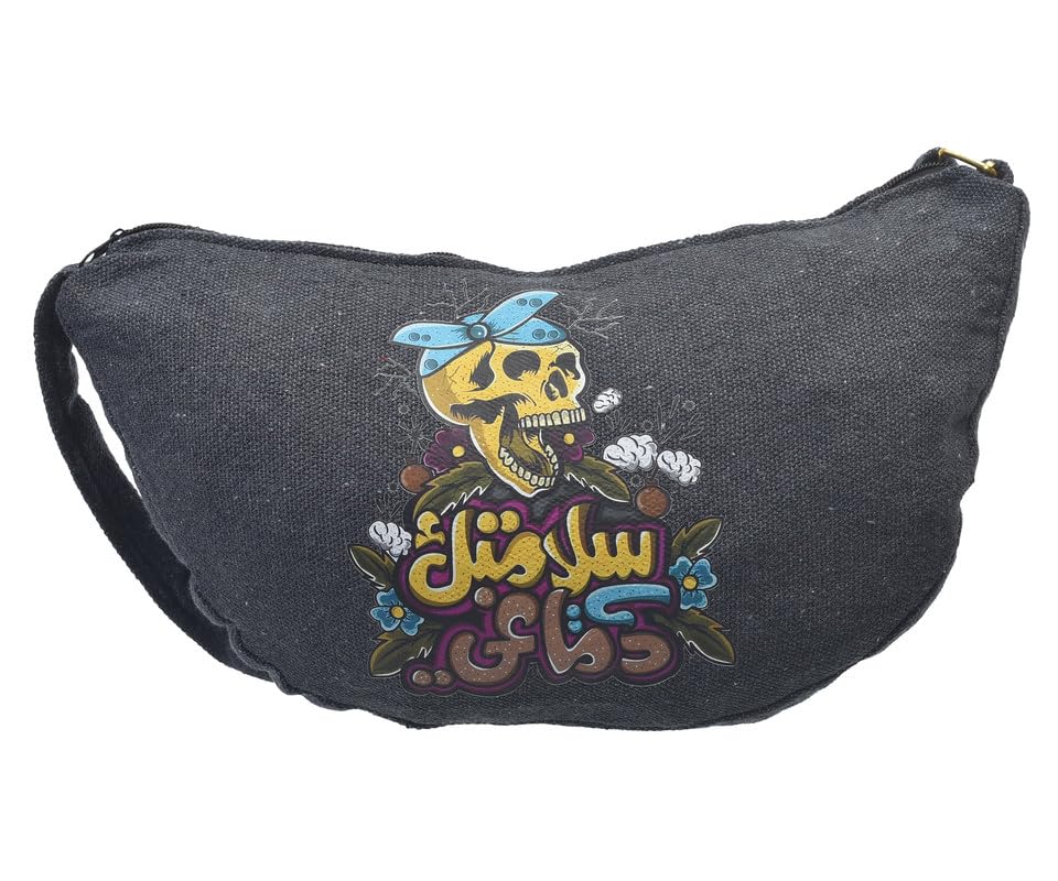 OX - شنطة خصر من القماش بتصميم عصري مطبوع عليها عبارات هزلية مع سوستة للنساء من اكس او، لون رمادي، موديل W-99