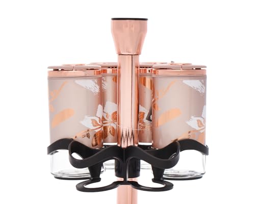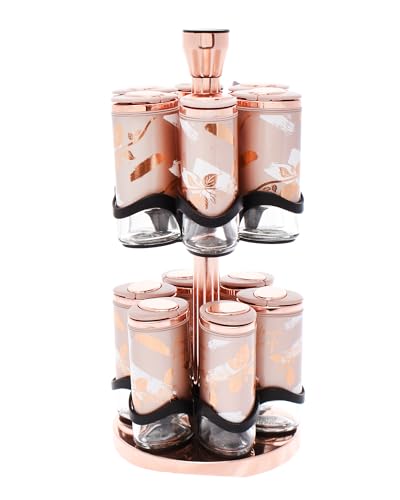 - مجموعة مختارة من الرفوف الأنيقة متضمنة مع كل طقم، مصممة لتنظيم وعرض برطمانات التوابل بأناقة على سطح الطاولة أو رف التوابل.