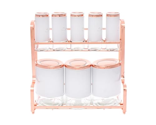 - تشتمل المجموعة على حامل للبرطمانات المنظمة للتمتع بتجربة الطبخ الخالية من المتاعب