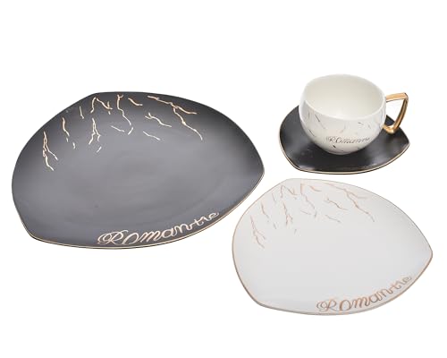 - يوفر طقم الشاي اكسفورد المكون من 24 قطعة باللون الأبيض والأسود لمسة عصرية على خدمة الشاي التقليدية بألوانه المتباينة الجريئة وخطوط التصميم الأنيقة.