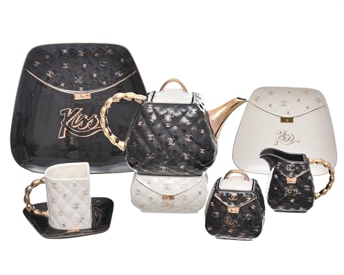 - يوفر هذا الطقم عملية تقديم شاي كاملة، بما في ذلك براد الشاي ومبيض القهوة والسكرية وفناجين الشاي وأطباق الفناجين، مما يسمح بتجربة شاي متناسقة تمامًا.