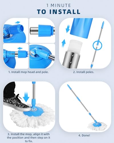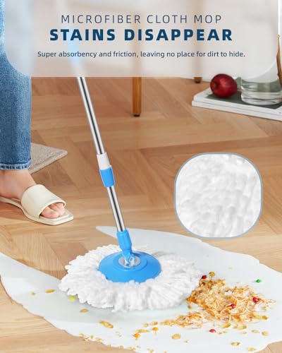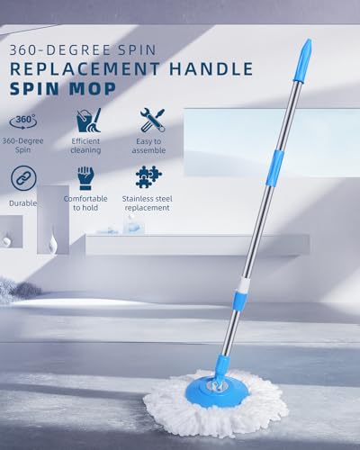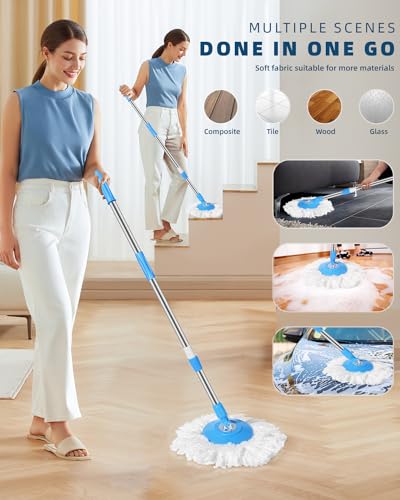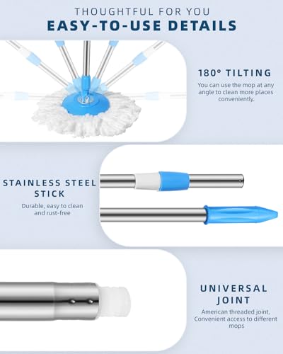 Oxherd - مقبض ممسحة موب مع رأس بديل من المايكروفايبر لتنظيف الأرضيات تدور 360 درجة مزودة بكاشط للتنظيف مناسبة للاستخدام في المنزل والمكتب من اوكسهيرد، لون أزرق