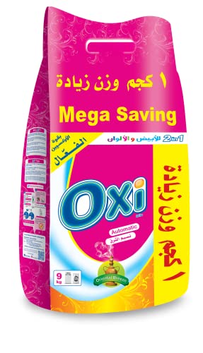 Oxi - مسحوق غسيل من أوكسي، صلب برائحة زهرية، سعة 9 كجم، وزن 9 كيلوجرامات، مخصص للغسيل الآلي، عبوة واحدة