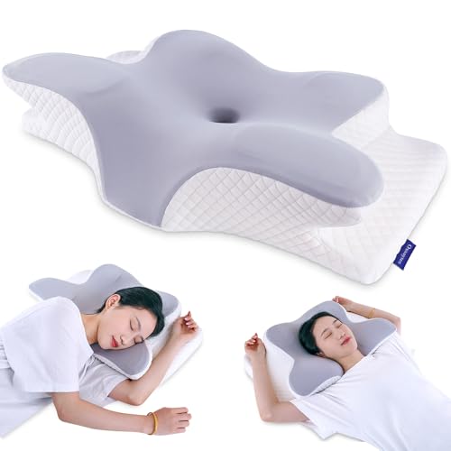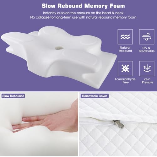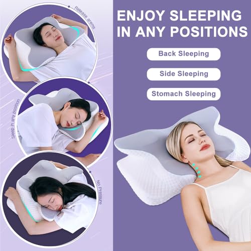 Oxsaytee - وسادة عنق على شكل فراشة لتخفيف الام الكتف والرقبة رقبة من الميموري فوم دعم الرقبة لتقويم العظام مريحة للنوم الجانب الخلفي والبطن مع غطاء قابل للغسل وشنطة تخزين أبيض