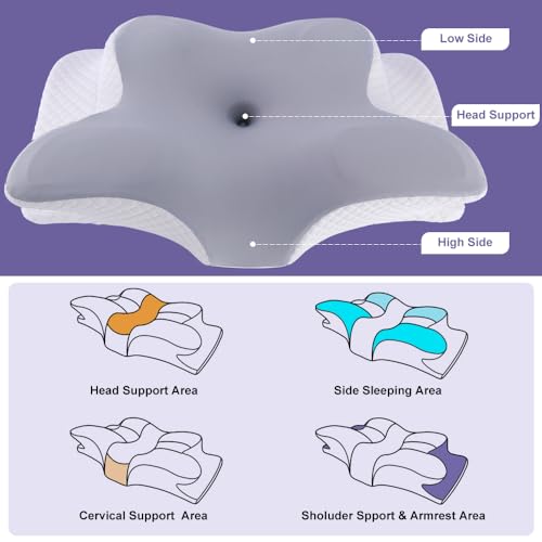 - 【وسادة مريحة من الميموري فوم حاصلة على براءة اختراع】تختلف عن وسائد السرير العادية، تعتمد وسادتنا تصميمًا فريدًا على شكل فراشة مع 4 مناطق تشمل الرقبة والرأس والنوم الجانبي ومنطقة دعم الذراع، والتي يمكن أن تدعم مناطق جسمك بشكل فعال وتخفف آلام الرقبة والكتف للسماح لك بنوم مريح..