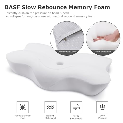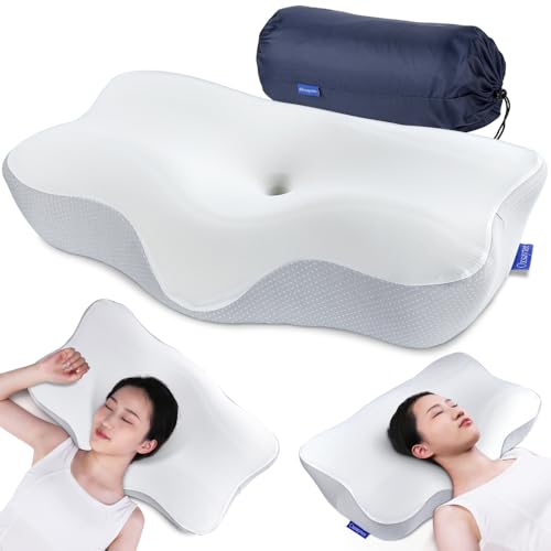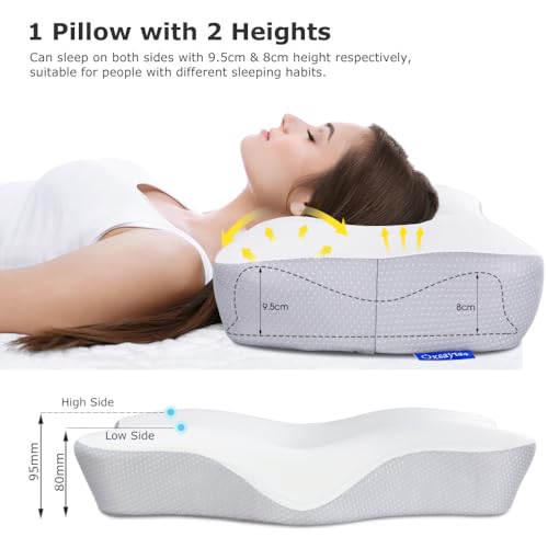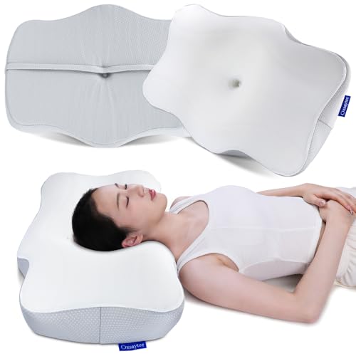 Oxsaytee - اوكسيتي وسادة رقبة من الميموري فوم عنق لتخفيف الام الكتف والرقبة دعم الرقبة لتقويم العظام مريحة للنوم على الجانب الخلفي والمعدة مع غطاء قابل للغسل أبيض رغوة الذاكرة