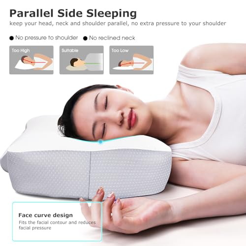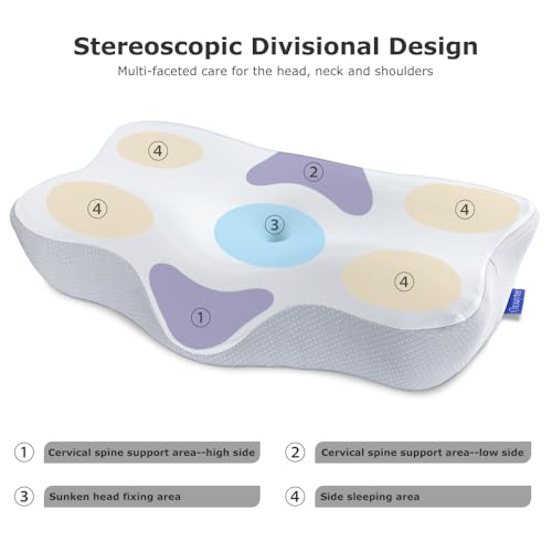 - 【وسادة ميموري فوم مريحة حاصلة على براءة اختراع】تختلف عن وسائد السرير العادية، تتبنى وسادتنا تصميمًا فريدًا الشكل مع 4 مناطق تشمل الرقبة والرأس والنوم الجانبي ومنطقة دعم الذراع، والتي يمكن أن تدعم مناطق جسمك بشكل فعال وتخفف آلام الرقبة والكتف للسماح لك بنوم مريح.
