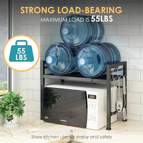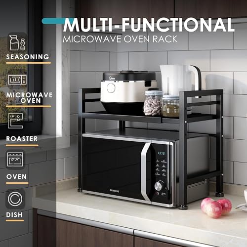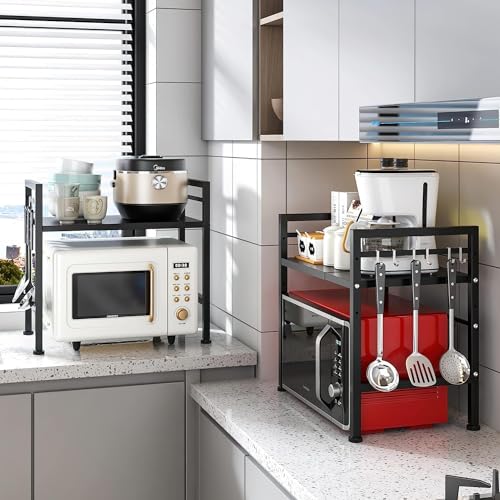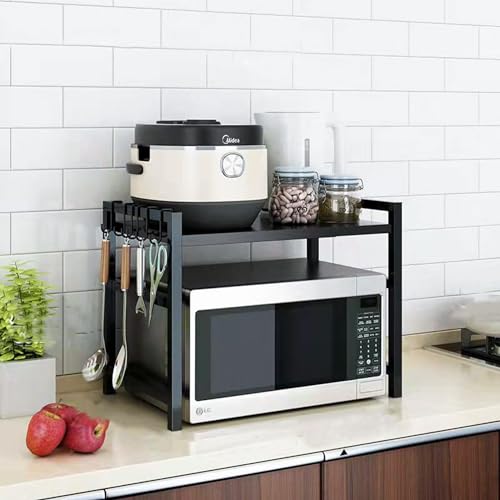 oydas - رف فرن ميكروويف قابل للتوسيع، حامل شديد التحمل لتنظيم سطح طاولة المطبخ، ارتفاع وطول قابل للتعديل من أويداس، 6 خطافات، وزن 25 كجم (طبقة واحدة)