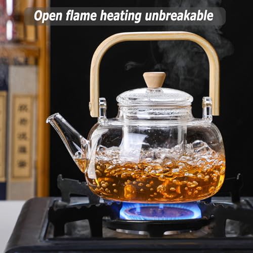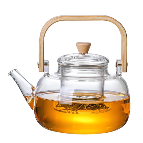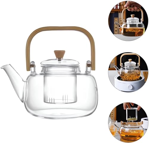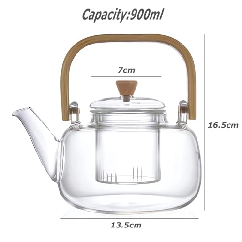 oydas - ابريق شاي زجاجي من اويداس، غلاية شاي زجاجية لسطح الموقد، سعة 900 مل، صانع شاي زجاجي شفاف مع مصفاة قابلة للازالة ومقبض خشبي، غلاية قهوة صغيرة لاوراق الشاي المتفتحة
