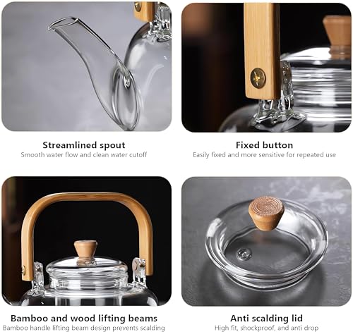 - 【سعة كبيرة】سعة 900 مل، تسهل غلاية الشاي الزجاجية هذه تحضير 3 إلى 5 أكواب، مما يجعلها الرفيق المثالي لتجمعات الشاي مع العائلة والأصدقاء. استمتع بالمشروبات المتنوعة، بما في ذلك الشاي والقهوة، في أي مكان اجتماعي.